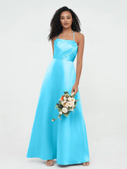 Spaghetti Straps Pleated Bodice Satin Gowns-Pool