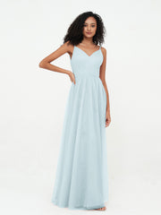 Spaghetti Straps Tulle Pleated Max Dresses-Mist