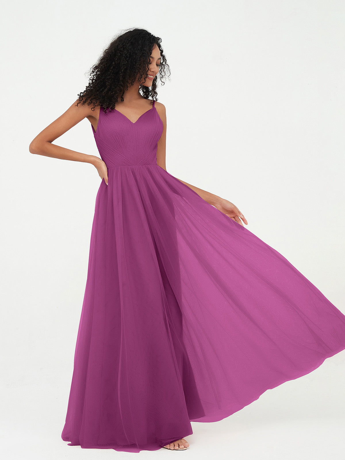 Spaghetti Straps Tulle Pleated Max Dresses-Orchid Plus Size
