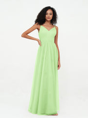 Spaghetti Straps Tulle Pleated Max Dresses-Sage