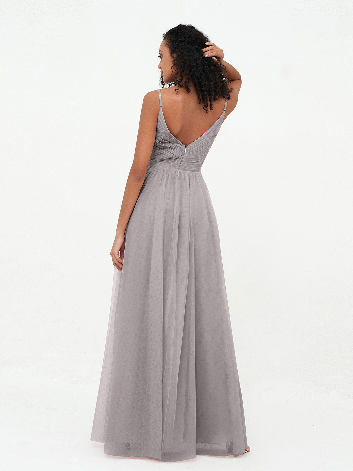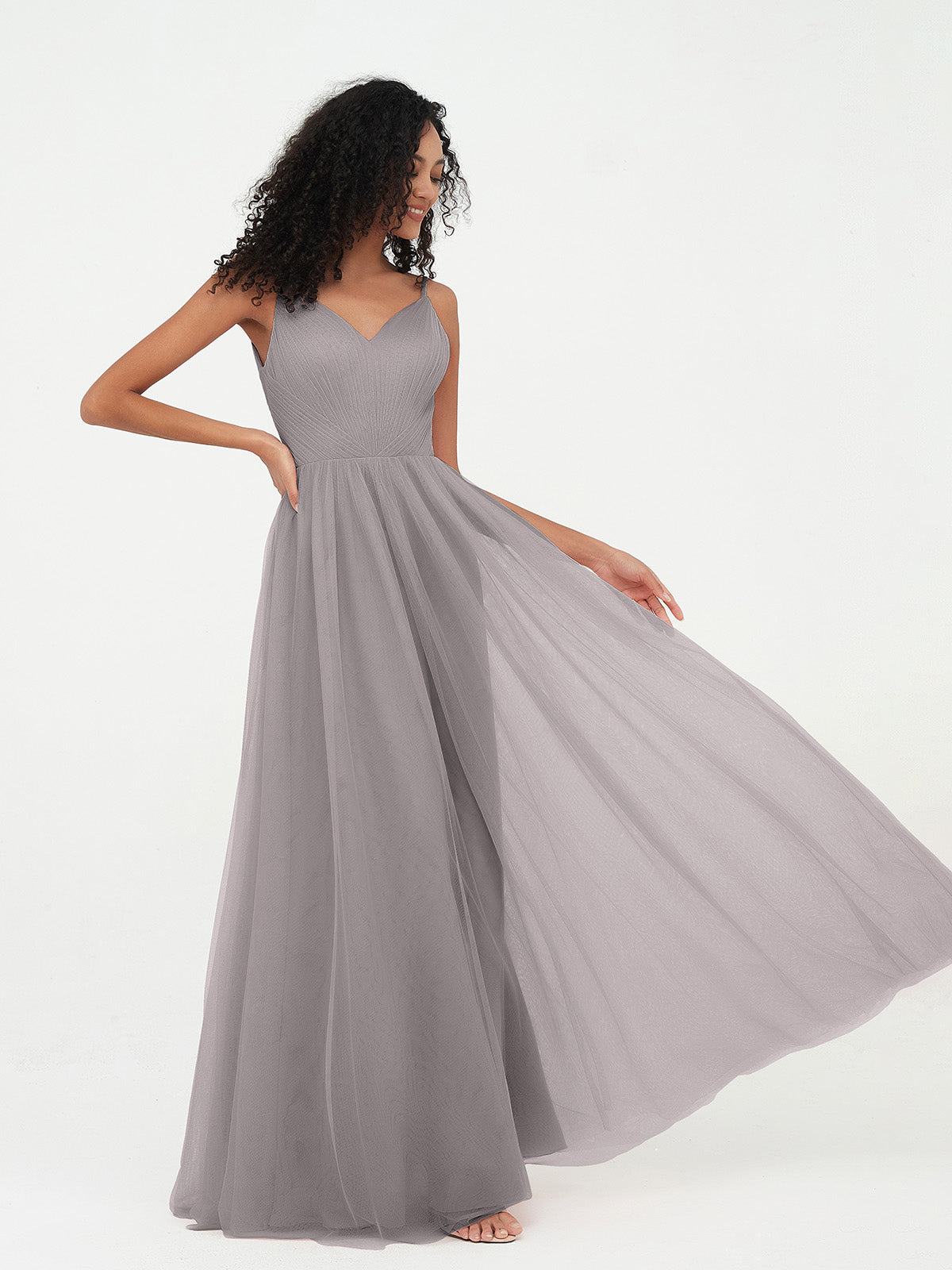 Spaghetti Straps Tulle Pleated Max Dresses-Silver Plus Size