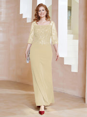 Square Neck 3/4 Sleeves Floor-length Dress Champagne