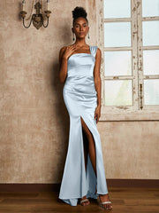 • Turn heads in the Strapless Trumpet Long Dress with Slit. The strapless design highlights your shoulders and neckline, while the trumpet silhouette gracefully flares from the knee, creating a dramatic, elegant effect. A thigh-high slit adds a touch of allure, making this dress perfect for a standout entrance at any formal occasion.