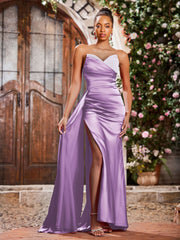 Sweetheart Acetate Satin Slit Dresses With Sweep/Brush Train Lilac