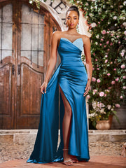 Sweetheart Acetate Satin Slit Dresses With Sweep/Brush Train Ocean Blue