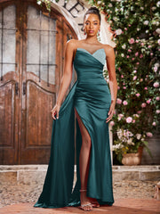 Sweetheart Acetate Satin Slit Dresses With Sweep/Brush Train Peacock