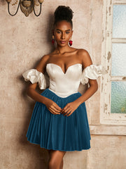 Sweetheart Short Dress with Detachable Sleeves Ink Blue