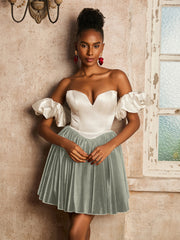 Sweetheart Short Dress with Detachable Sleeves Silver