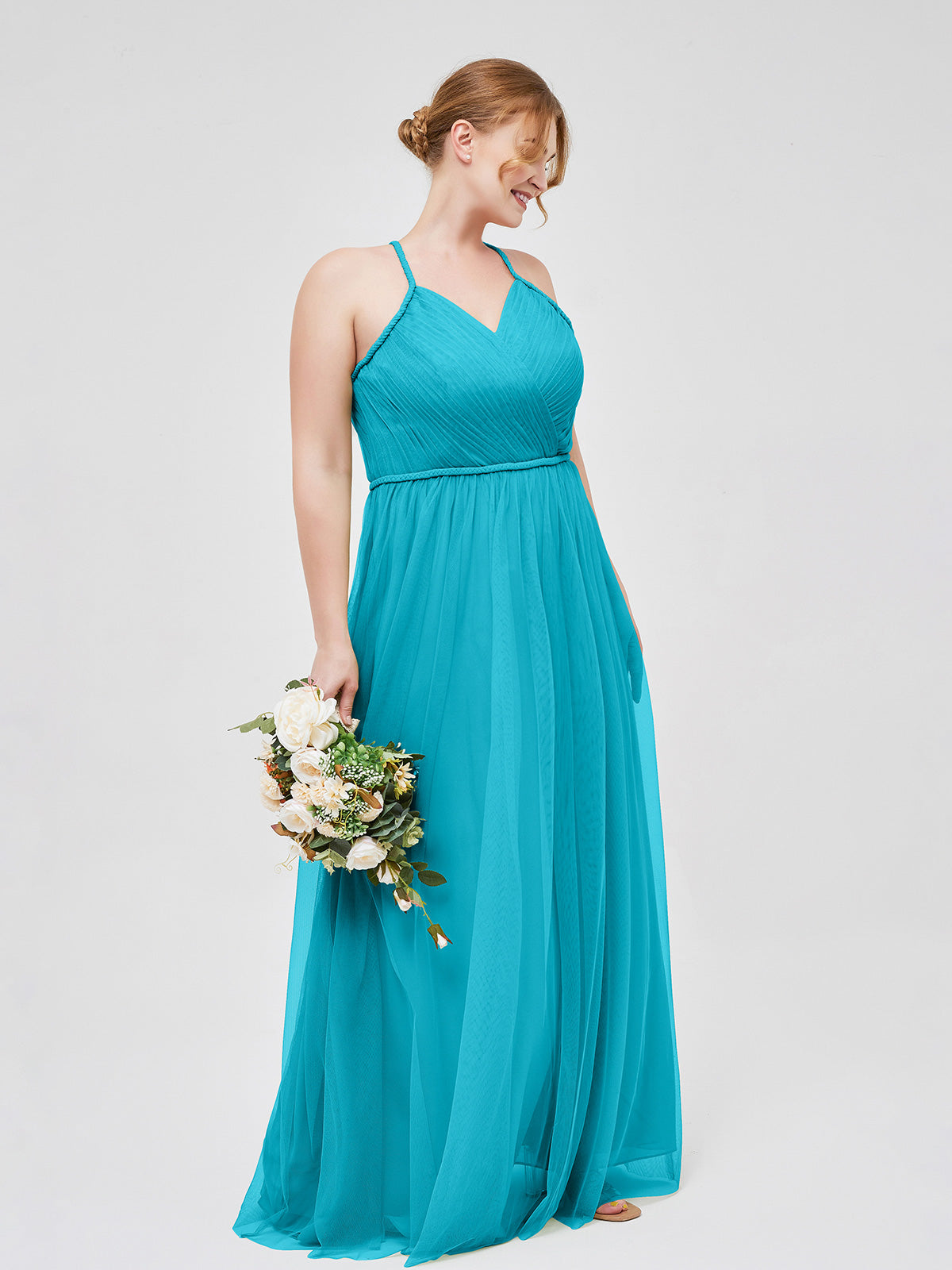 Twist Straps Tulle Maxi Dress with V Neckline Jade Plus Size
