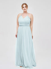 Twist Straps Tulle Maxi Dress with V Neckline Mist Plus Size