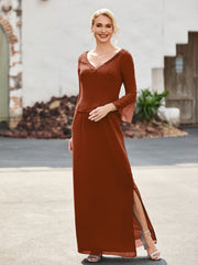 V-neck Beaded Floor-length Sheath Dress Terracotta