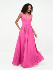 V-neck Chiffon Long Dresses with Pocktes-Azalea
