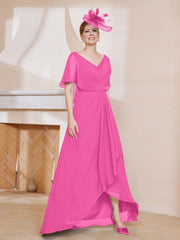 V-neck Flutter Sleeves Asymmetrical Dress Azalea