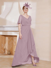 V-neck Flutter Sleeves Asymmetrical Dress Dusk