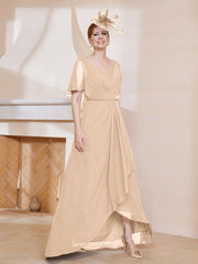 V-neck Flutter Sleeves Asymmetrical Dress Peach