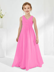 V-neck Junior Bridesmaid Dresses with Pleated Azalea