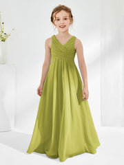 V-neck Junior Bridesmaid Dresses with Pleated Clover