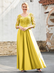 • Exude timeless elegance in this V-neck lace top A-line satin dress, where luxurious satin and delicate lace come together for a flawless, sophisticated look.