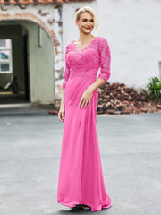 V-Neck Lace Top Half Sleeves Chiffon Dress Azalea