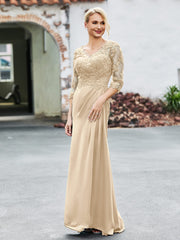 V-Neck Lace Top Half Sleeves Chiffon Dress Champagne