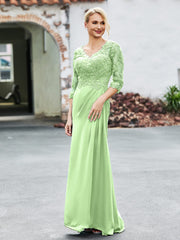 V-Neck Lace Top Half Sleeves Chiffon Dress Sage