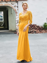 V-Neck Lace Top Half Sleeves Chiffon Dress Tangerine