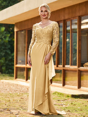 V-Neck Long Sleeves Chiffon Pleated Dress Gold