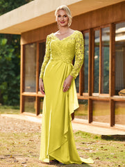 V-Neck Long Sleeves Chiffon Pleated Dress Lemon