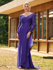 V-Neck Long Sleeves Chiffon Pleated Dress Regency