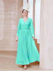 V-neck Long Sleeves Pleated Ruched Dress Spa
