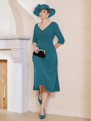 V-Neck Pleated A-line Dress Ink Blue